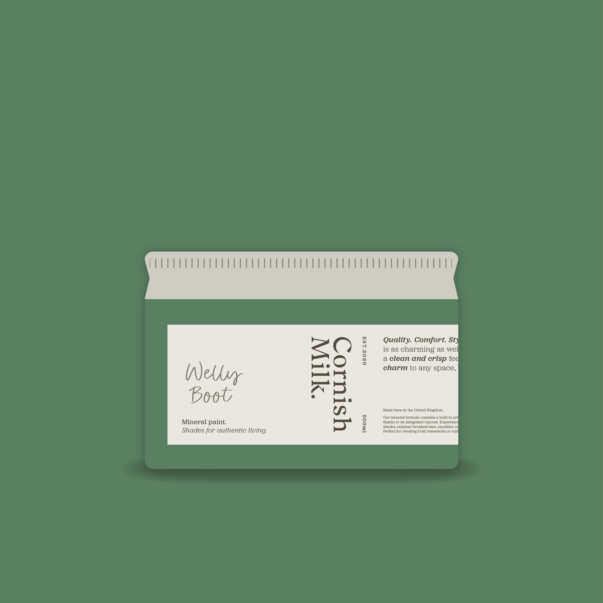 Quality. Comfort. Style. This dark green shade is as charming as wellies themselves. It exudes a clean and crisp feel, adding freshness and charm to any space, both indoors and out.
